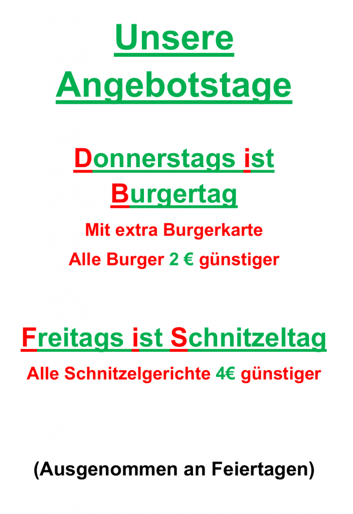 Wir hoffen, dass Sie unser Angebot an Speisen und Getränken überzeugt,